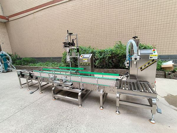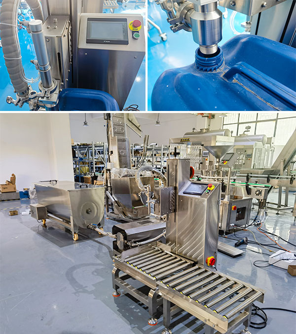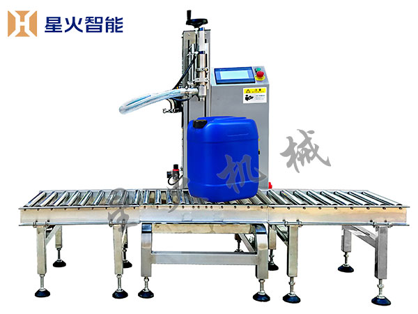 25公斤半自动防滴漏灌装机能够为10-30升的大桶容器的称重灌装,操作人员将空的容器桶放置在称重台,并经过软件系统的规格摄入,它通过电子称重秤可以精准的检测出灌装容量的多少,并将信息反馈至显示平台,25公斤半自动防滴漏灌装机整合了人工上桶、脚踏开启、自动灌装、智能称重的生产模式,可以降低自动化投入的同时,还能够保证灌装精度的一致性运作。